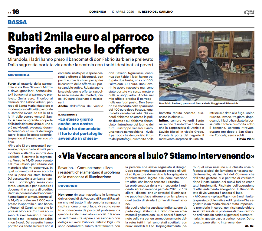 La notizia è semplice: ladri in chiesa, soldi spariti, offerte volatilizzate, portafogli che prendono la via della redenzione al contrario. Ma il punto non è tanto il furto. Il punto, a Mirandola, è sempre la capacità quasi artistica di prendere una figuraccia e trasformarla in una specie di successo laterale, di risultato obliquo, di vittoria immaginaria da raccontare con aria soddisfatta.