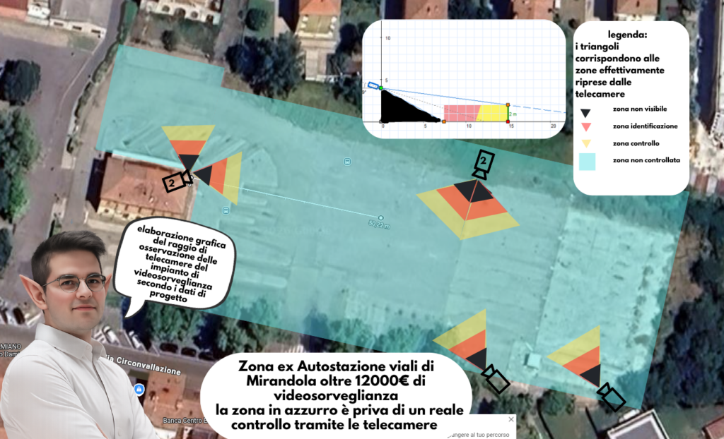 Perché finché guardi le tavole del collaudo vedi i bei triangolini rossi, ordinati, rassicuranti: tutto coperto, tutto sotto controllo, tutto “sicurezza urbana integrata” come da manuale . Poi però qualcuno prende quei dati, li misura davvero, li scala sulla realtà… e succede il disastro.