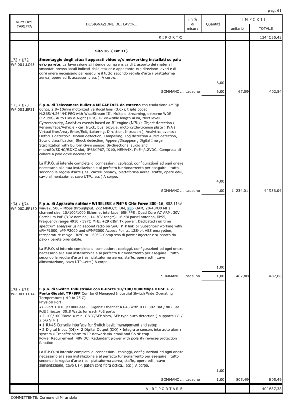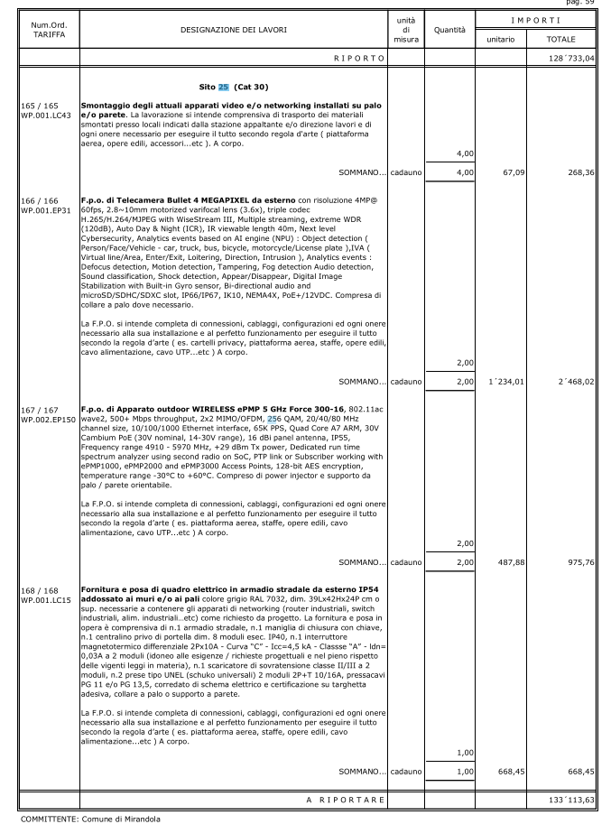 Il progetto prevede telecamere da 6 o 4 megapixel con zoom variabile e illuminazione IR fino a circa 50 metri.