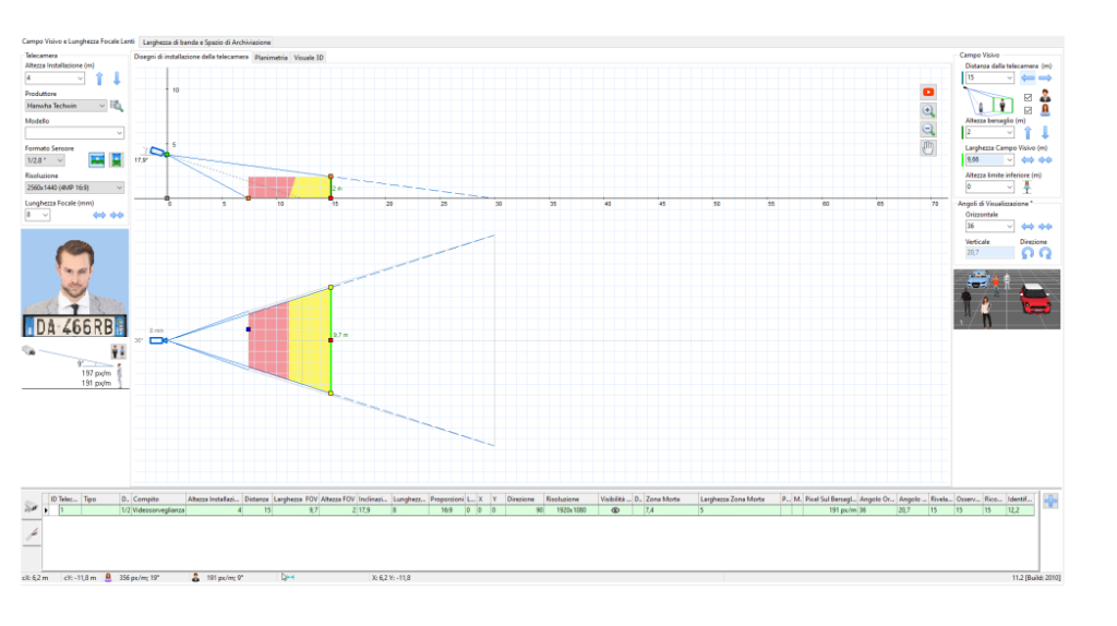 Tradotto: abbiamo riempito una piazzale con telecamere da 4MP, ma la zona in cui una persona è davvero identificabile è più simile a un foglio a4 ma visto in sezione.