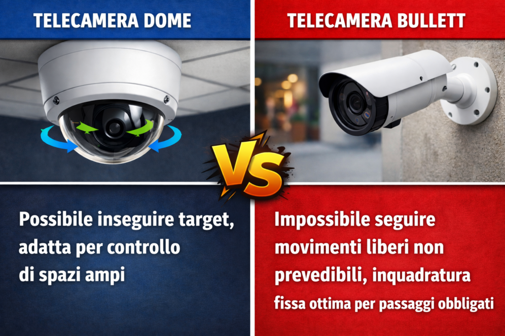 Per chi non mastica queste cose, la differenza è semplice. Le dome sono fatte per osservare spazi: piazze, parchi, luoghi dove le persone si muovono liberamente, si fermano, cambiano direzione. Le bullet, invece, sono perfette per guardare lungo una traiettoria: una strada, un accesso, un passaggio obbligato. Sono telecamere che funzionano benissimo se vuoi controllare chi passa. Molto meno se vuoi capire cosa succede in uno spazio.